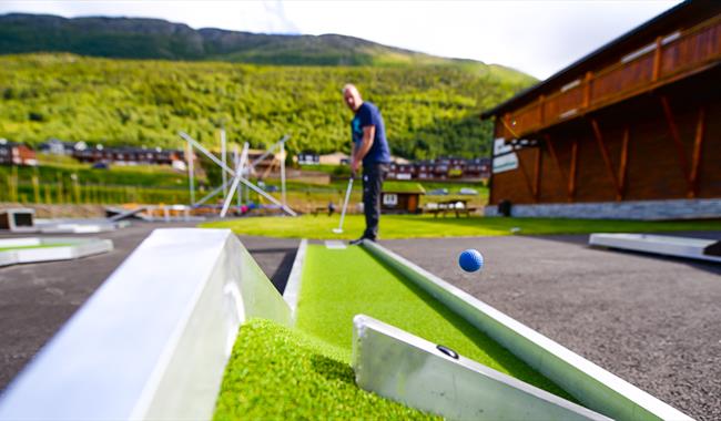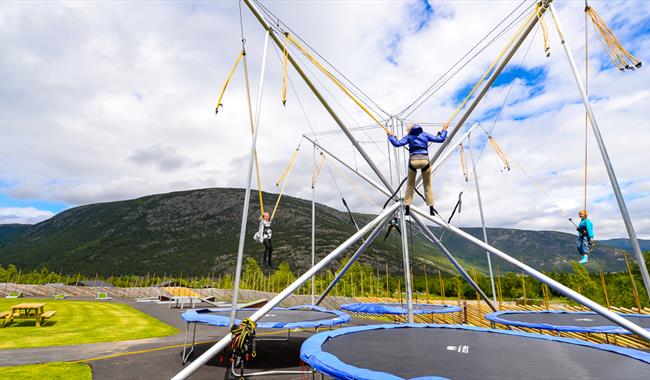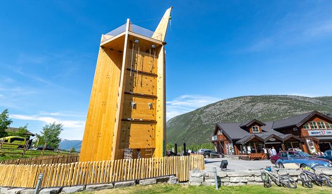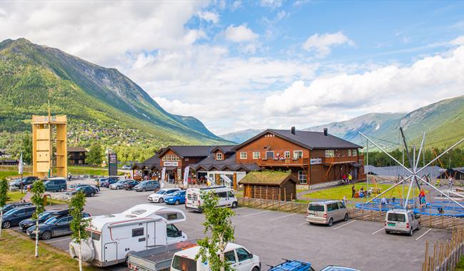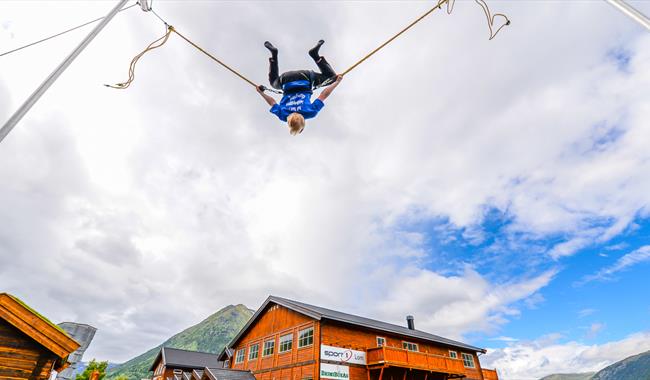 Auf den Gyrotrampolinen sind es vor allem die jüngsten, die sich amüsieren, aber es macht auch Spaß für andere in der Familie. Der Kletterturm hat 8 Routen und einen spektakulären Sprung von oben; Lomsbykset. Hier gibt es einfache Routen für Anfänger und schwierigere Routen für Fortgeschrittene. Außerhalb des Bereichs gibt es auch normale Trampoline und Skaterrampen. Wir vermieten Frisbees für das Golfspiel in Bøverdalen, etwa 15 km vom Stadtzentrum von Lom entfernt.